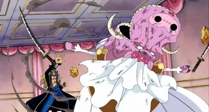 48 Capítol 464 i Episodi 359, l'Absalom se sorprèn que els cops d'en Sanji li facin mal.