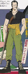 El seu vestuari ha canviat molt poc des de la primera aparició, ara fa servir una camisa negra juntament amb uns pantalons (al principi color verd fosc, en l'actualitat gris) amb moltes butxaques en ells ficats dins de les seves botes amb sivelles, una faixa de color or, una camisa al voltant de les espatlles i, com no, el rifle i el cigarret.
