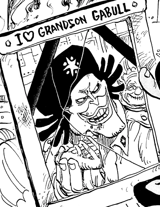 - ↑ One Piece Manga - Capítol 708, El Kehihihihi d'en Caribou al Nou Món: En Caribou troba una foto d'en Gaburu amb l'àvia.