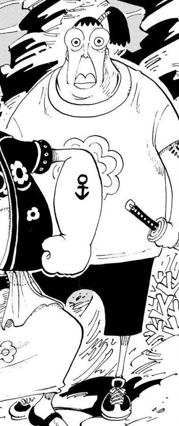 - ↑ 1,0 1,1 One Piece Manga i Anime — Vol. 51 Capítol 492 (pàg. 6) i Episodi 387, apareixen els Pirates d'en Macro.