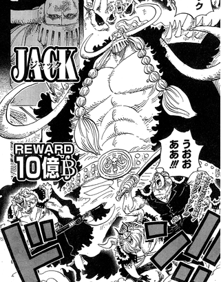 - ↑ 1,0 1,1 One Piece Manga i Anime — Vol. 80 Capítol 801 i Episodi 746, en Jack apareix per primer cop.