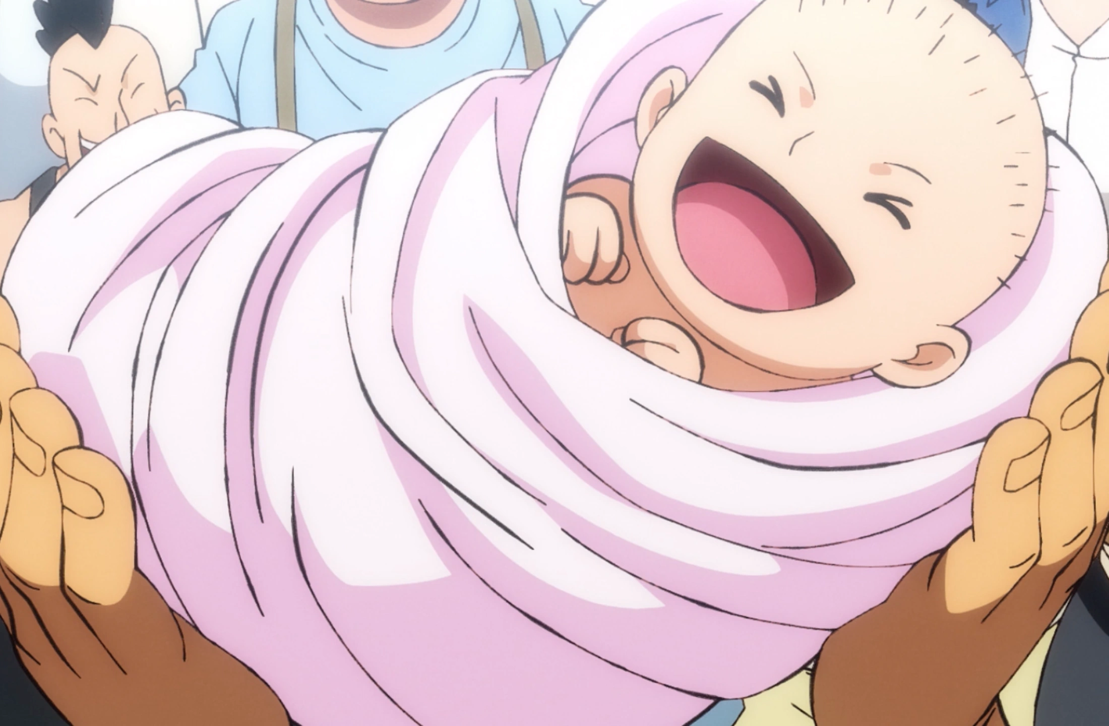 Nois oferint menjar a en Momonosuke