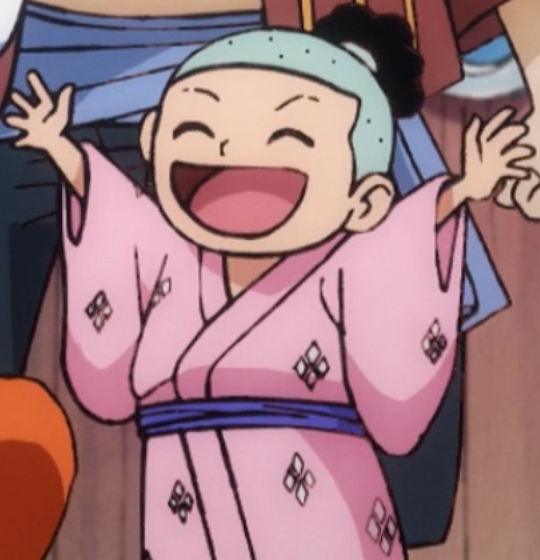 En Kozuki Momonosuke és el fill del dàimio de la família Kozuki, en Kozuki Oden.[2] Va néixer 28 anys abans del present, però va viatjar 20 anys endavant quan tenia 8.[7] Més tard, amb l'ajut de la seva vasalla Shinobu i la seva habilitat, el seu cos va envellir 20 anys, tot i que continua sent un nen mentalment.[4]