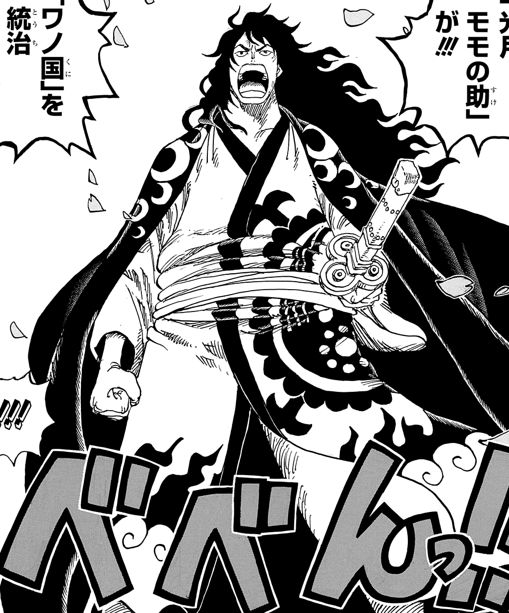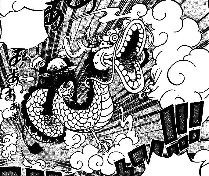 En Momonosuke va menjar una fruita del diable del tipus zoan creada artificialment per en Vegapunk, considerada un fracàs. Aquesta fruita el va convertir en un drac serpentí amb la capacitat de volar agafant-se als núvols que crea. No obstant això, com que fa poc que ha menjat la fruita, encara no sap controlar les transformacions que proporciona una fruita zoan, preguntant a en Ruffy com ho pot fer. D'alguna manera aconsegueix tornar a la seva forma humana, tot i que, com que al transformar-se va perdre la roba, quan adquireix de nou forma humana va despullat.