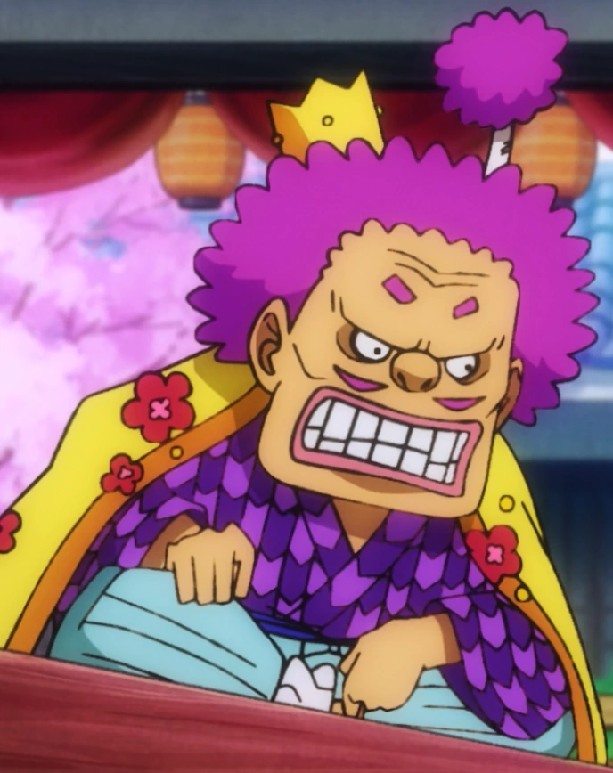A causa de les seves accions, és un dels antagonistes de l'arc del País de Wano i de la saga dels Yonko.