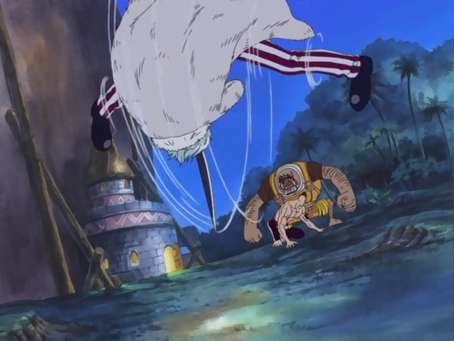 - ↑ One Piece Manga i Anime — Vol. 25 Capítol 231 i Episodi 150, En Sarquiss utilitza "Tall de Llom" per atacar al Masira.