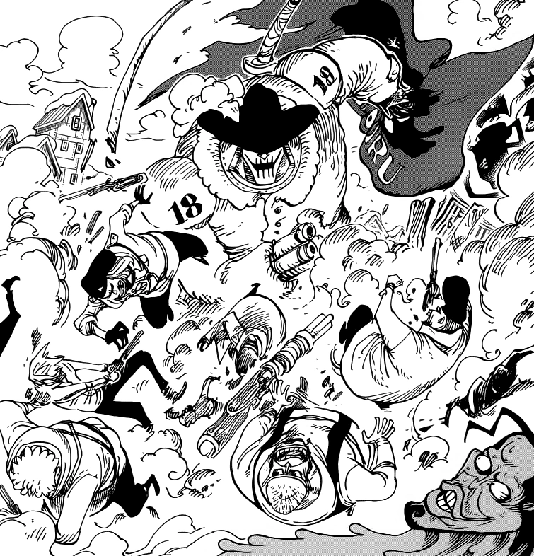 - ↑ One Piece Manga i Anime - Capítol 595 i Episodi 513, En X Drake i la seva tripulació es troben amb un cyborg a les ordres del Yonko Kaido.