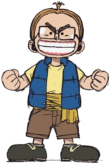 Després del salt temporal, s'ha tornat més alt, i el seu cabell és més llarg. Vesteix amb una camisa curta, amb una armilla fosca, amb una faixa, amb uns pantalons curts de ratlles i unes sabates clares.