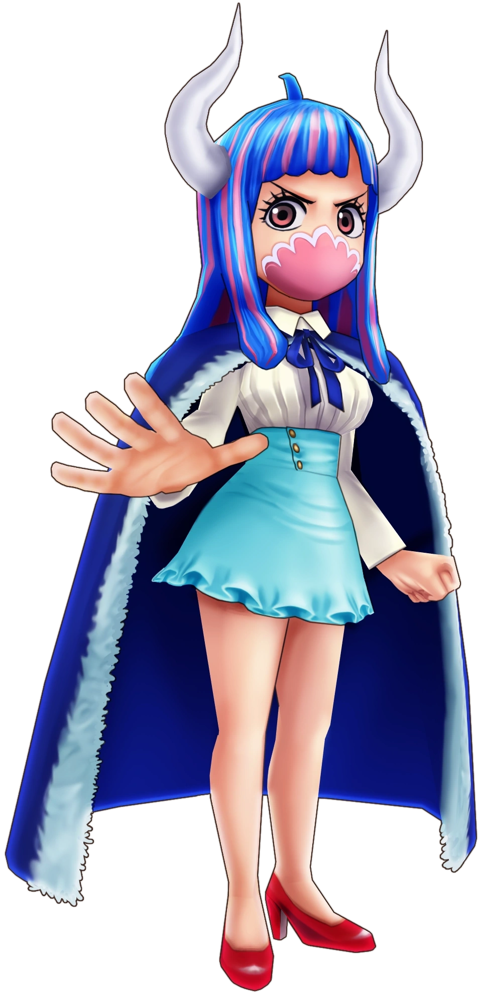 La Ulti és una dona jove atrevida i grollera que no es queda enrere durant una baralla verbal i amenaça regularment amb la violència a aquells que la molesten. Una mica voluble, es mostra actuant amistosa i intentant semblar refinada i madura un moment, per començar poc després a insultar, cridar i amenaçar. La Ulti no deixa que ningú li digui el que ha de fer i no sembla tenir por de ningú. Ni tan sols els gustos del Queen es troben fora de perill dels seus comentaris, la qual cosa implica que no el tem gens. A més, la Ulti no té cap problema en actuar de manera molt casual cap al Kaido, expressant alegria durant la seva reunió amb ell, tot i que no va dubtar en dir que era un "idiota", mentre que els altres membres dels Tobiroppo tenen por d’ell. Tampoc va dubtar en defensar al Page One amenaçant al Sasaki