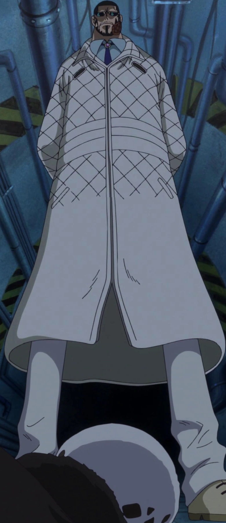- Tot i ser un vicealmirall no se'l va veure durant la Batalla de Marineford.
