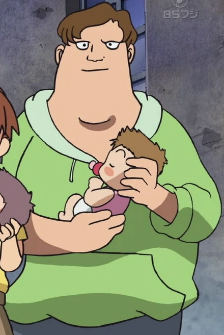 Akihiro es una persona más bien pálida y redonda que tiene el pelo marrón y lleva un abrigo verde.[1]