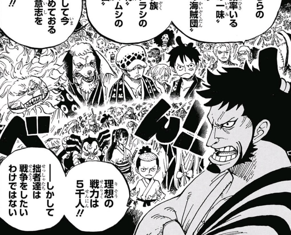 - ↑ One Piece manga — Vol. 95 Capítulo 954 (p. 16-17), Kaidou y Big Mom se alían.