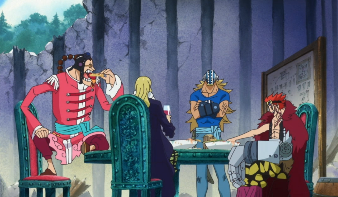 - ↑ One Piece anime — Episodio 748, Los antiguos miembros de la Asociación Pirata Silver trabajan como esclavos.