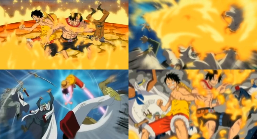 Monkey D. Luffy y Portgas D. Ace vs. Sakazuki[]