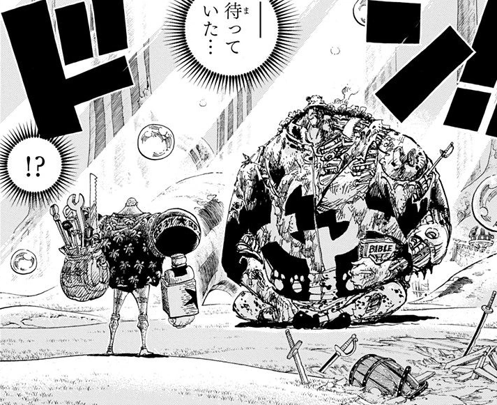 Franky encuentra a Kuma, después de que este último protegiera al Thousand Sunny en dos años.
