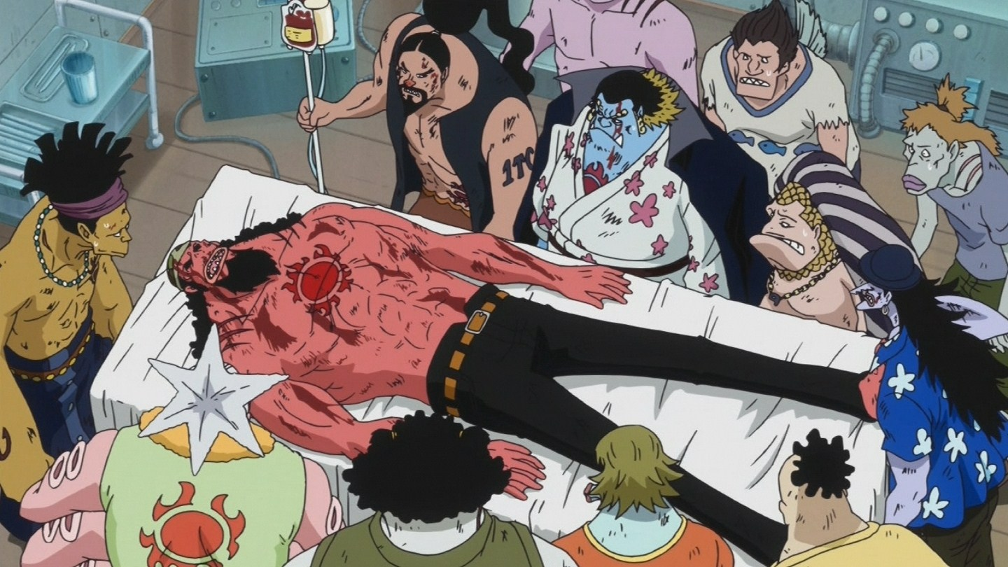 Transfusión de sangre de Jinbe a Luffy.