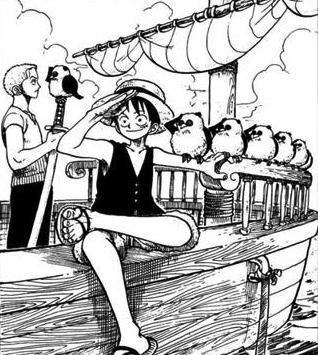 - ↑ One Piece manga — Vol. 1 Capítulo 8, Luffy es capturado por un pájaro de apariencia similar da Ballon.