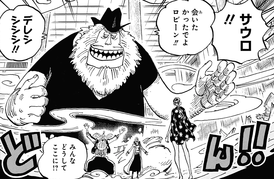 - ↑ 12,0 12,1 12,2 One Piece manga y anime — Vol. 101 Capítulo 1021 y Episodio 1041.