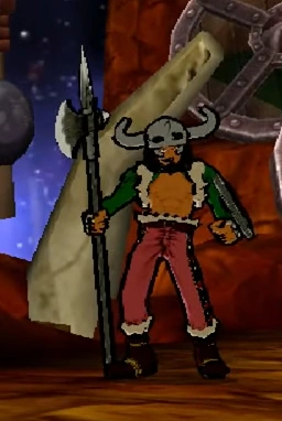 Blyue lleva una calavera de búfalo sobre su cabeza. Tiene el pelo largo y rojo, y lleva un abrigo de pelos verde, con unos pantalones rojos y unas botas. También tiene una perilla roja.[1]