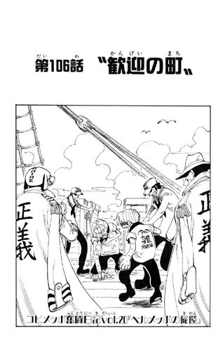 El capítulo 106 de One Piece se titula: «El pueblo de las celebraciones».