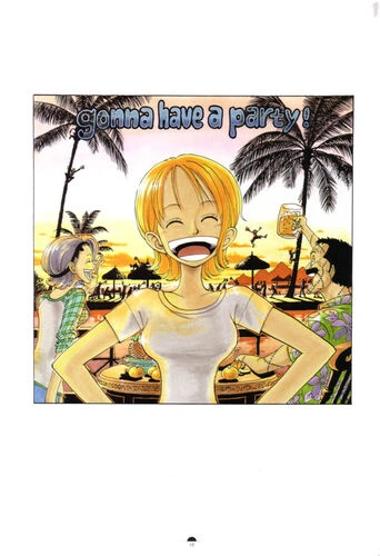 Portada a Color: se ve a Nami feliz, y un mensaje que dice voy a tener una fiesta de hecho.