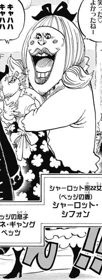 - ↑ One Piece manga — Vol. 97 Capítulo 977, minihistoria: El "Oh familia mía" de "Gang" Bege Vol. 24.