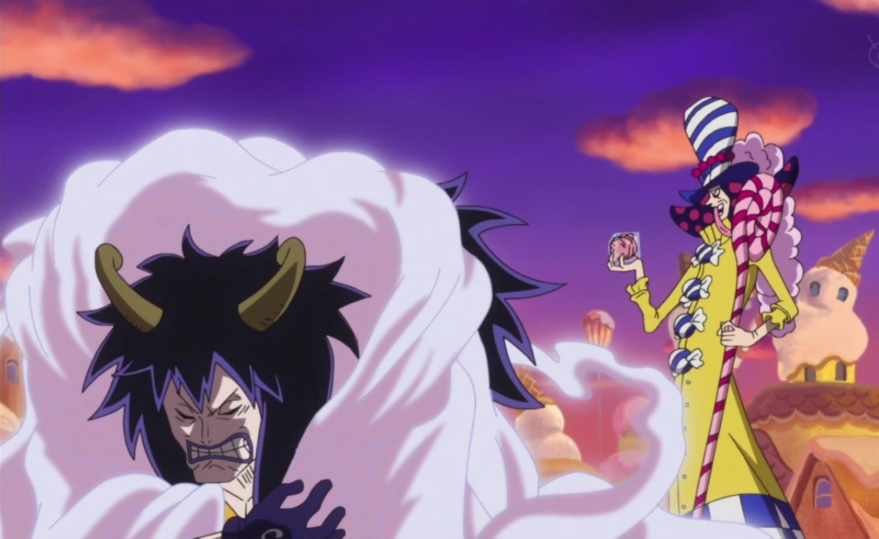 Es uno de los antagonistas secundarios más destacados del arco de Whole Cake Island y del arco del País de Wano.