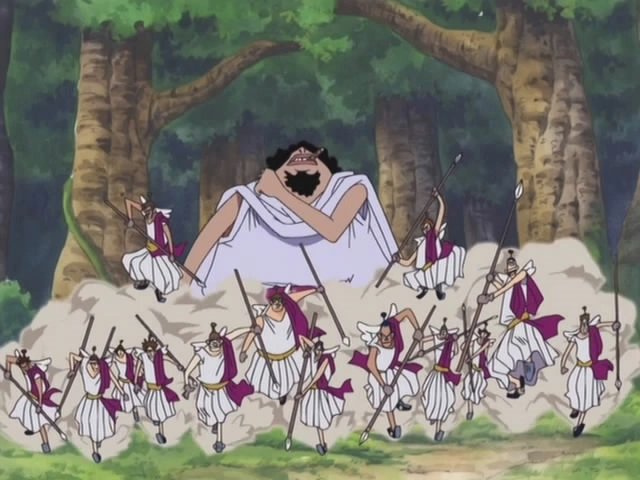 - ↑ One Piece manga y anime — Vol. 27 Capítulo 254 y Episodio 167, Enel debuta como el Dios de Skypiea.