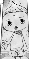 Es un niño normal y tímido. Tuvo mucho miedo de la cabeza cortada de Kinemon, y se impresiono mucho de la apariencia de Franky[3].