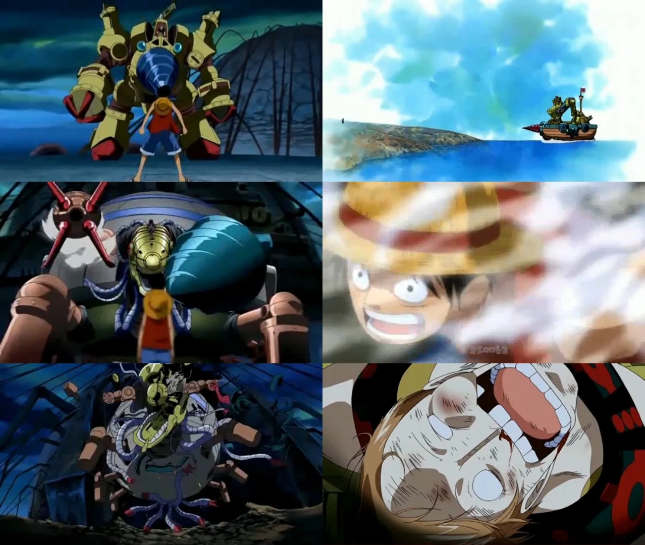 Luffy y los demás deciden destruir el castillo para que la tortuga no siga siendo controlada. Deciden unificar sus poderes y lanzar un poderoso ataque que la destruye en un momento.