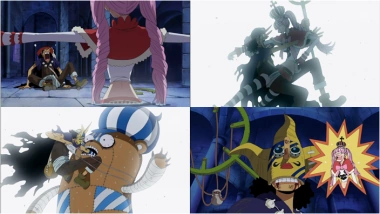 Usopp se ve obligado a pasar por los poderes de la Fruta Horo Horo, incluidos los órganos intocables, la manipulación de su tamaño, pasando a la derecha a través de él, y la creación de "Mini-Hollows". Temporalmente se convierte en Sogeking para eliminar finalmente a Kumashi purificándolo, Usopp es forzado contra la pared desesperada hasta que finalmente descubre la debilidad de Perona: su propia habitación, donde su cuerpo real se encuentra sin poder utilizar sus habilidades.