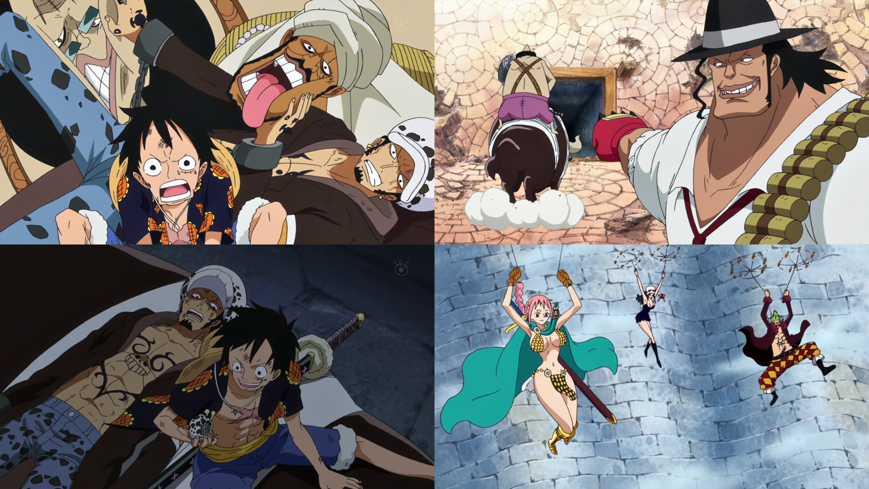 Ya decididos, Kelly y sus hombres empiezan a entrar al atajo pero son atacados por alguien misteriosamente. Luffy y Law siguen avanzando hasta el punto de que se ven llenos de agua a su alrededor y se detienen, mientras atrás suyo aparece una silueta de a poco, quien resulta ser Doflamingo.