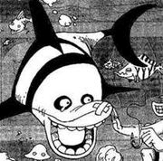 - ↑ One Piece manga y anime — Vol. 8 Capítulo 68 y Episodio 30, un tiburón panda aparece por primera vez.