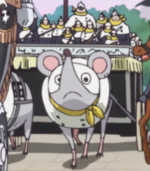 La soldados del Germa 66 se ven viajando en un carruaje que es tirado por grandes ratones detrás de la carroza real de la familia.[16]