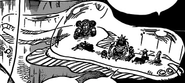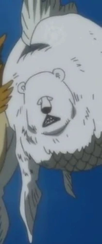 - ↑ One Piece manga y anime — Vol. 64 Capítulo 630 y Episodio 550, el oso marino causa un alboroto en las colinas de Gyoverly Hills.