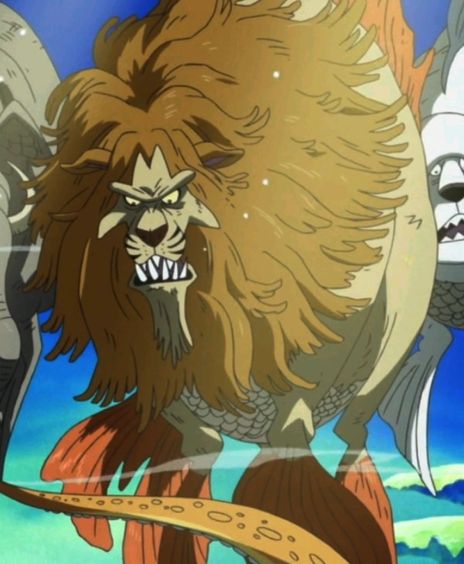 El león marino (海獅子 Umi jishi?) es un monstruo marino que vive en las profundidades del océano. Uno de ellos fue visto en el ejército de bestias marinas de los Nuevos Piratas Gyojin a las afueras de la isla Gyojin[4], más tarde se vería transportando a los Piratas Voladores hacia el Palacio de Ryugu.[5] Más tarde es derrotado junto a las otras bestias por los príncipes.[6] Puede basarse en el Merlion, una criatura mítica con la cabeza de un león y el cuerpo de un pez. Su nombre es un juego de palabras, haciendo referencia al león marino de la vida real. Mide 55 metros (180'5") de longitud.[7]