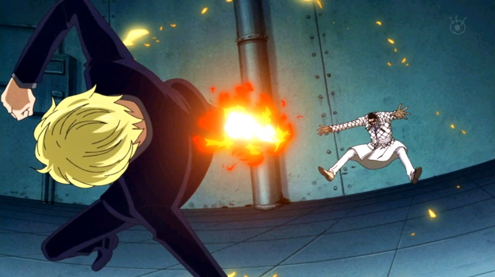 - ↑ 1,0 1,1 1,2 One Piece manga y anime — Vol. 43 Capítulo 415 y Episodio 298, Sanji usa el diable jamble por primera vez.