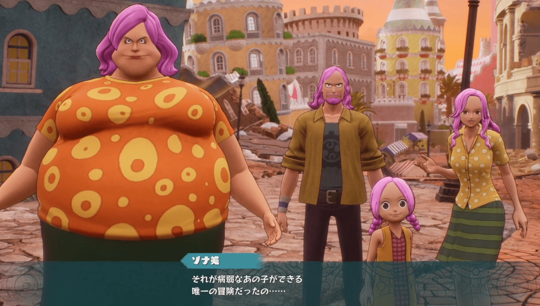 En la Memoria de Dressrosa donde Trafalgar Law derrotó a Donquixote Doflamingo, la familia Zona escondió a Law en Dressrosa cuando visitó la isla. A cambio, curó la enfermedad de Zona Middel. Cuando Law derrotó a Doflamingo, empezó a vigilar el ascensor a la Meseta Real, exigiendo a la gente que respondiera a sus cuestionarios y el resto de la familia vigilaba escondida.[1]