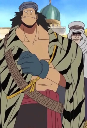 Se le ve al lado de Koza, quien se convirtió en el ministro de medioambiente de Arabasta.[2]