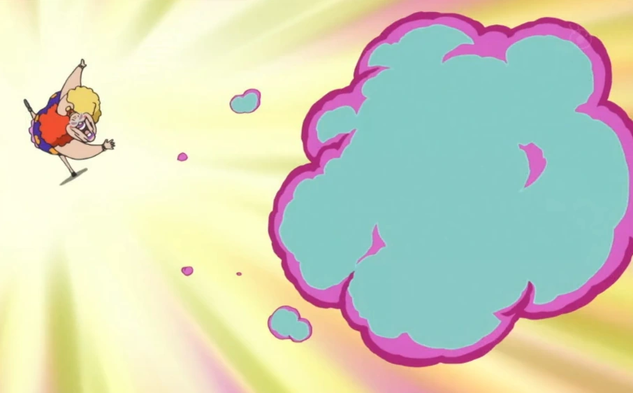 En el anime, el arte creado por la fruta vuelve a la normalidad en una nube de humo, en lugar de parecer desvanecerse o enjuagarse cómo se vio en el manga.