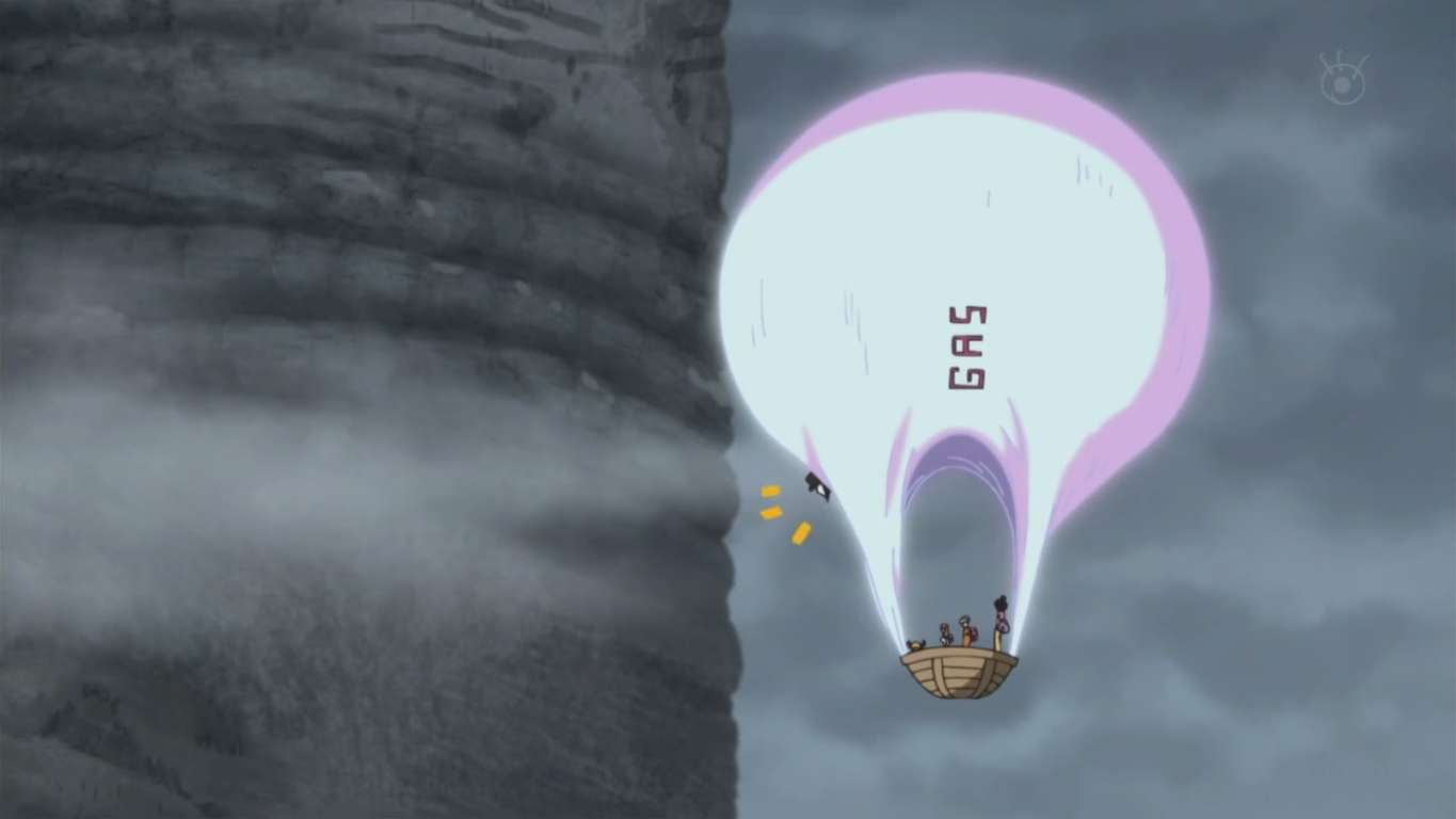 El color del gas es naranja en el manga, pero en el anime, toma un tono morado pálido.