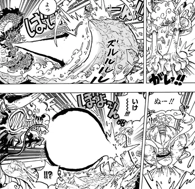 Más tarde, y como en otras ocasiones, Luffy resolvió el desgaste que produce el gear 5 consumiendo grandes cantidades de alimento, lo que lo hizo recuperar toda su fuerza y lanzandose de nuevo a la batalla contra Borsalino y Jaygarcia Saturn.[9]