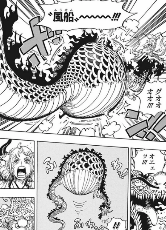Gomu gomu no fusen (ゴムゴムの風船,Gomu gomu no fūsen?, lit. «Globo de goma goma»): Una variante de la técnica estándar de Luffy. A diferencia de la técnica original, el cuerpo de Luffy se vuelve extremadamente flotante. La utilizó por primera vez contra Kaidou en su forma bestia, afectando su cuerpo con los efectos de la técnica después de haber sido tragado por él.[3]