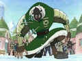 - ↑ 1,0 1,1 1,2 1,3 One Piece manga y anime — Vol. 15 Capítulo 135 (p. 19) y Episodio 81, la fruta es vista en uso por primera vez.