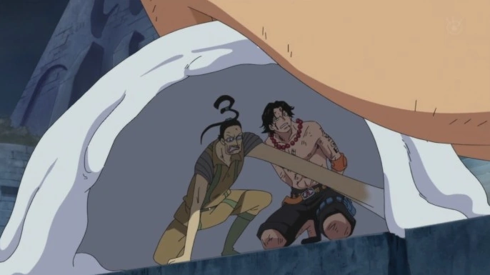 Galdino protegiendo a Ace.