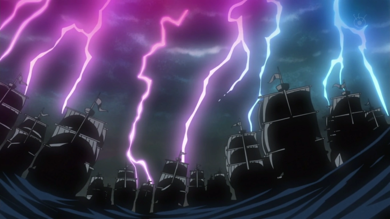 - ↑ One Piece manga y anime — Vol. 88 Capítulo 885 (p. 14-15) y Episodio 858, Los Piratas de Big Mom convocan a su flota.