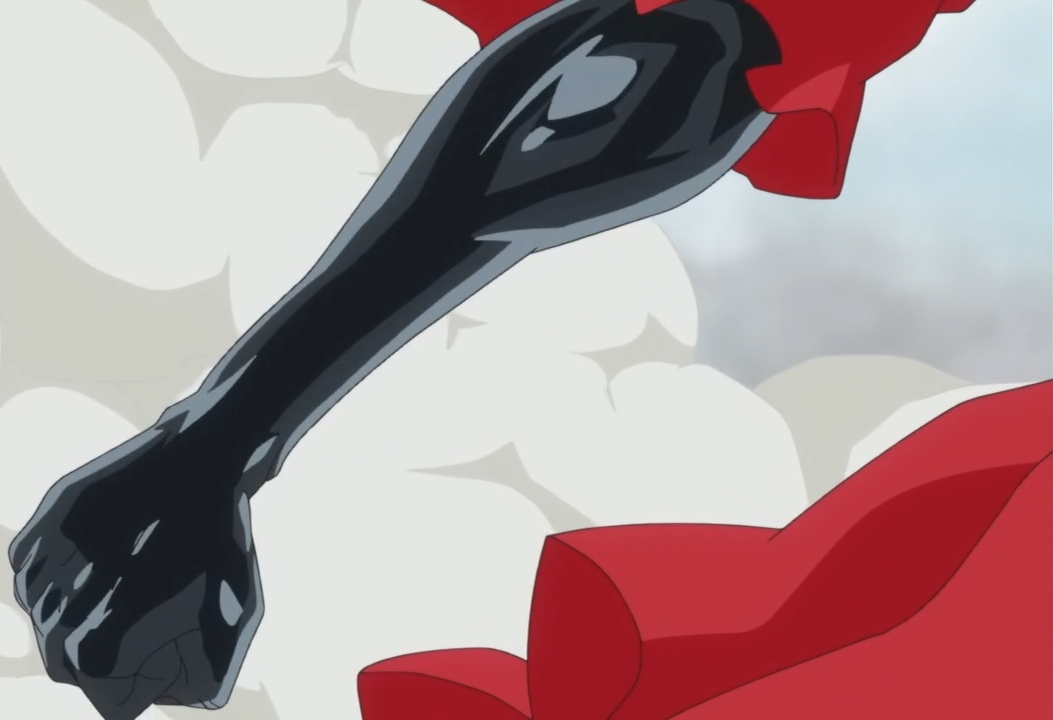 Garp utilizando el busoshoku, para sobrepasar el cuerpo de goma de Luffy.