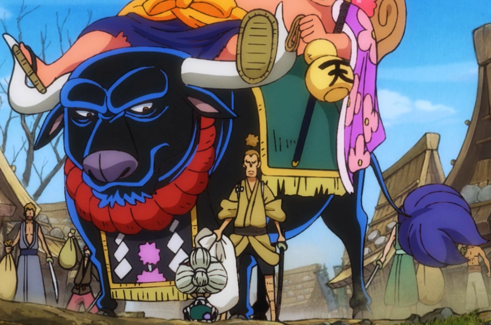 - ↑ 3,0 3,1 One Piece manga — Vol. 92 Capítulo 922 (p. 6-8), Ashura monta en Home para escapar de Kaidou.