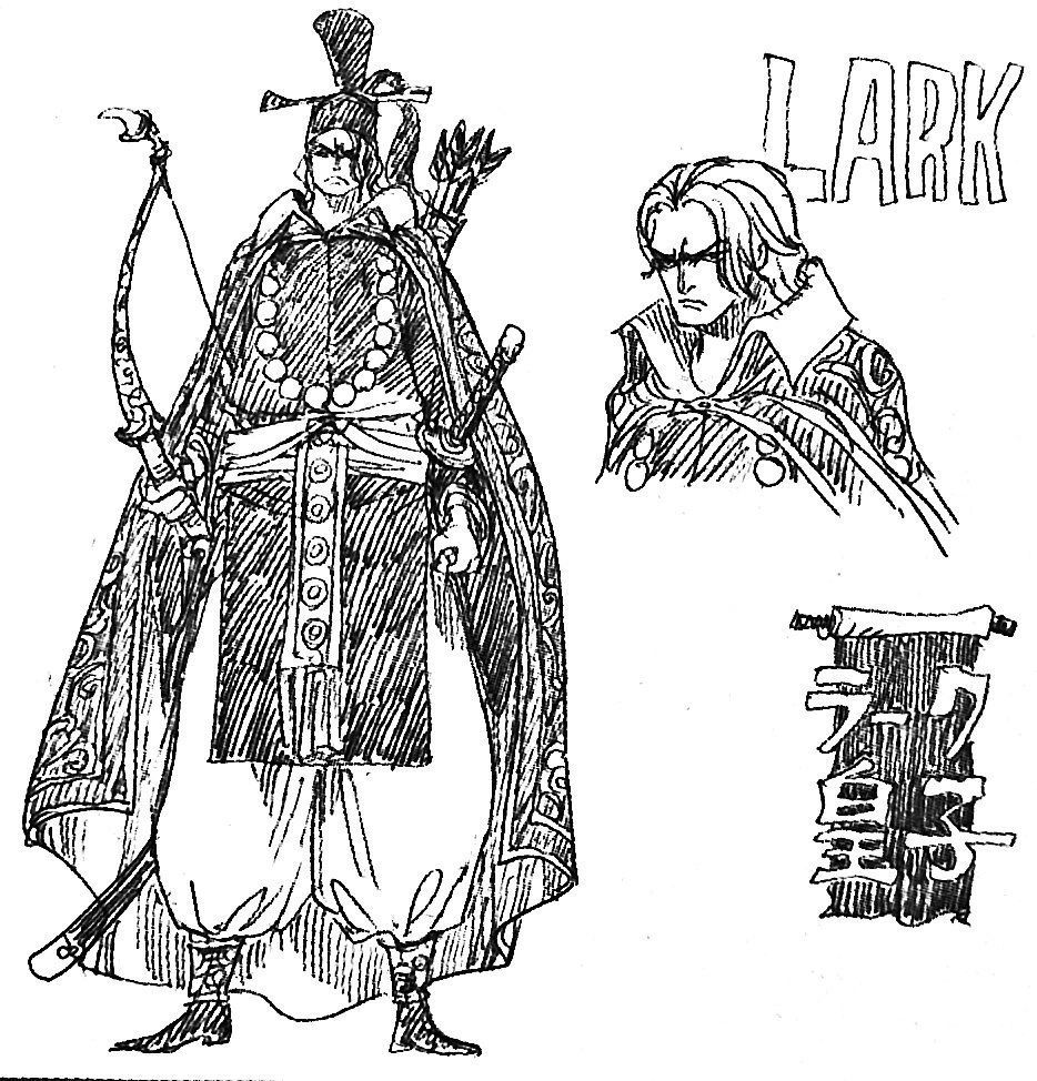Aunque puede parecer noble y para quienes lo conocen, Lark es, en realidad, extremadamente insensible y un obseso del poder. Está dispuesto a asesinar para ascender a un estatus superior (cosa que hizo con el daimyo Hitaki y casi lo hizo con su prometida Kikuhime). Para encubrir sus crímenes, no tiene ningún problema en atribuir los hechos a otras personas (específicamente, a Toratsugu).[1]