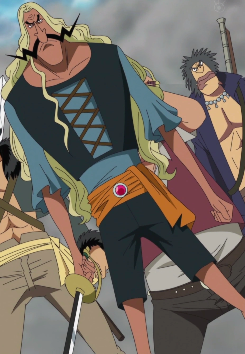 Se le ve, por primera vez, en Marineford, junto a otros 47 capitanes aliados a Barbablanca para salvar a Portgas D. Ace. Al igual que el resto de piratas, se sorprende enormemente, cuando Squard apuñala a Barbablanca[2]. Se le vio apoyando a Luffy y a Emporio Ivankov, cuando estaban huyendo. Más tarde, demuestra su poder luchando, igualadamente, contra el vicealmirante Doberman.